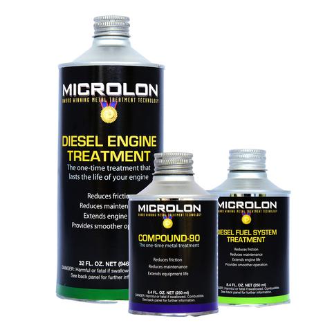 The same protection available for gasoline engines is also available for diesel applications. Today’s stop-and-go driving and higher freeway speeds make it more important than ever to use the one time Microlon automotive engine treatment. The friction reducing Microlon film saves you money by reducing fuel consumption, decreasing maintenance costs and extending the life of your engine. You also help our environment with reduced noxious emissions. Plus, you’ll notice smoother operation and improved performance with increased horsepower and torque. Each kit contains: treatment for Crankcase application – treatment for Fuel System application