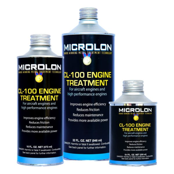 Microlon CL-100 Aircraft Engine Treatment was developed primarily for use in the aviation market and has been successfully used for over three decades to treat high performance piston aircraft engines. It is the first engine metal treatment to pass the rigorous tests necessary for FAA approval (May 1979). It is designed for use in aircraft engines of up to 1000 cubic inch displacement.